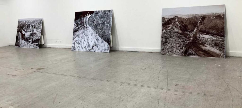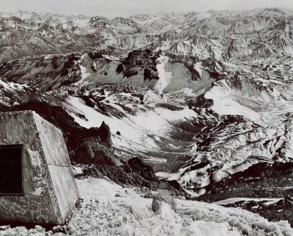 Each drawing explores the tension between the natural and the altered, offering a window into the transformation that occurs when the human presence enters the realm of the sublime. The series proposes a contemplative experience, where details and linework suggest new meanings, prompting reflection on our presence in the world and the impact we generate on our environment.