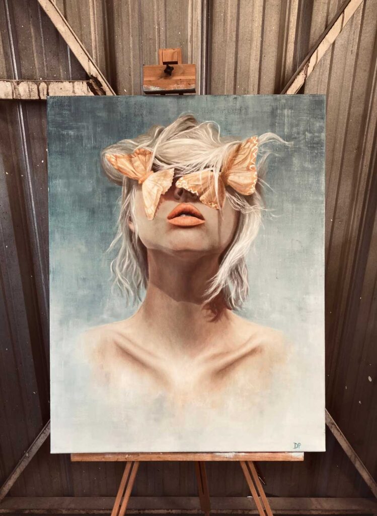 A través de una armoniosa interacción de colores y pinceladas, la pintura revela un portal hacia el alma, desbloqueando los misterios internos. Se adentra en el reino de los sueños, donde la imaginación no tiene límites, y celebra la feminidad en todas sus facetas.